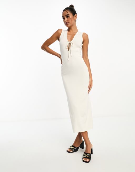 ASOS DESIGN deep plunge tie front midi dress in ivory