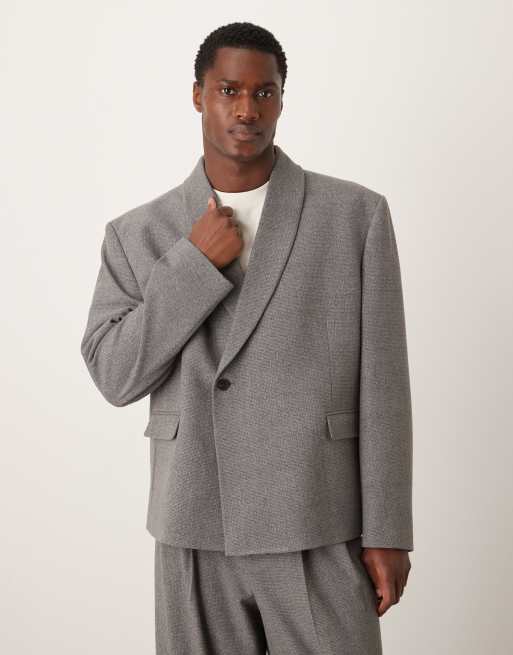 ASOS DESIGN deep wrap double breasted boxy suit jacket in charcoal heather texture