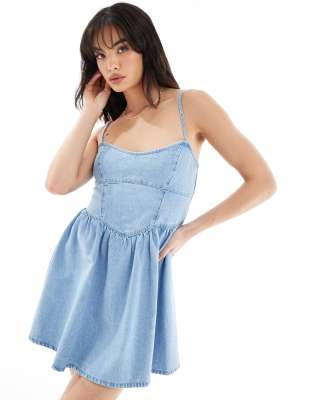 ASOS DESIGN denim cami mini dress in lightwash blue