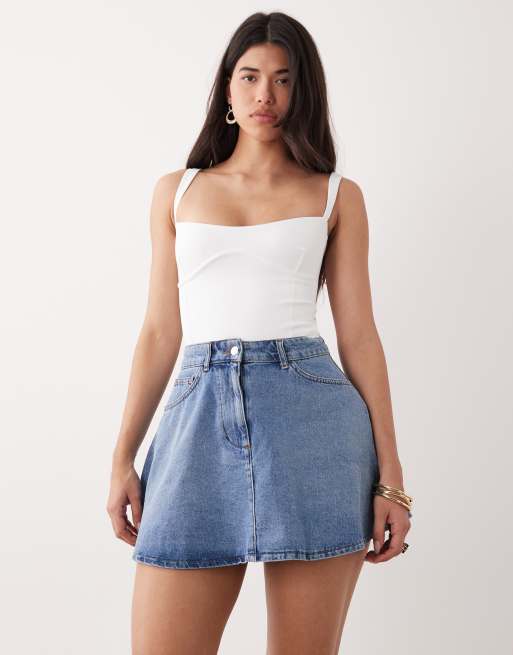 ASOS DESIGN denim circle mini skirt in mid blue