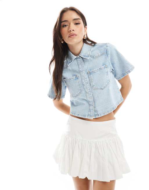 ASOS DESIGN denim crop shirt in pale wash