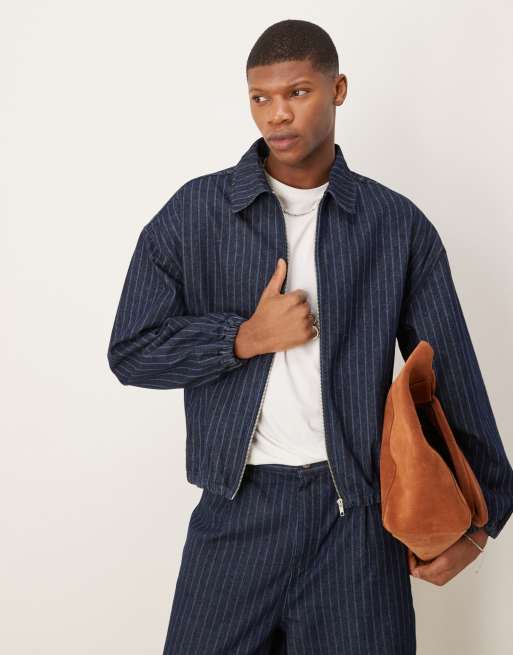 ASOS DESIGN denim jacket with stripe in dark wash blue - part of a set