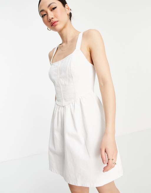 ASOS DESIGN denim skater dress in white