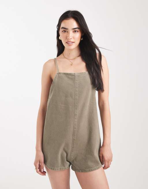 ASOS DESIGN denim square romper in khaki