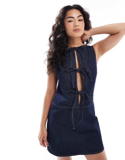 ASOS DESIGN denim tie front shift dress in indigo