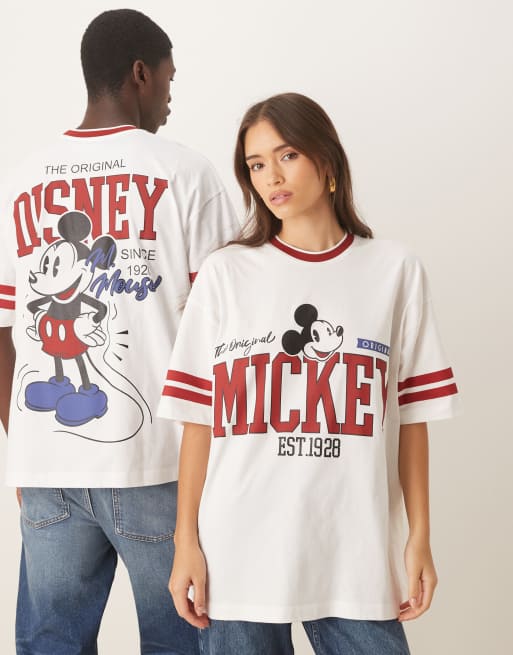ASOS DESIGN Disney Unisex oversized baseball t-shirt with Mickey Mouse prints in white
