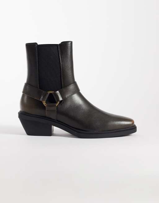ASOS DESIGN distressed chelsea boots with metal hardware and cuban heels in brown