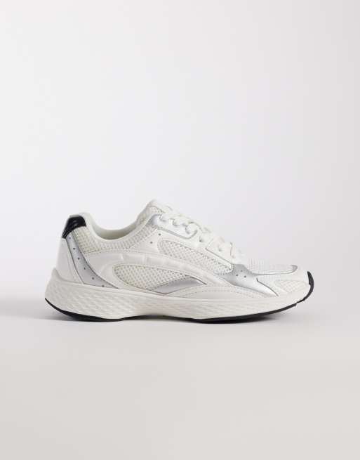 ASOS DESIGN Doodle lace up sneakers in white and silver