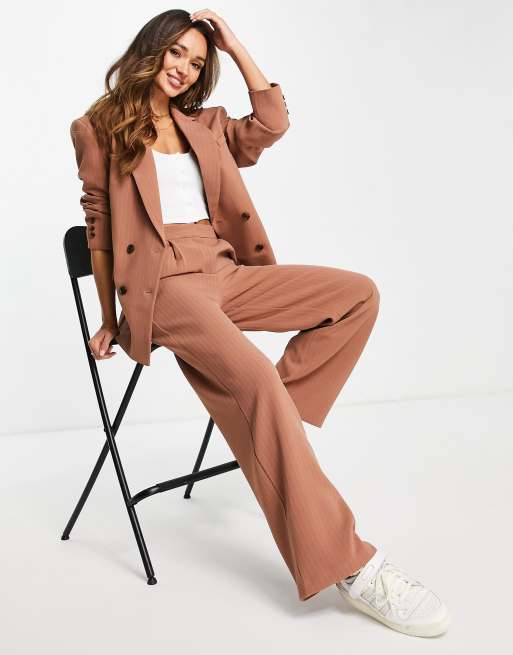 ASOS DESIGN double breasted dad suit blazer in camel pinstripe
