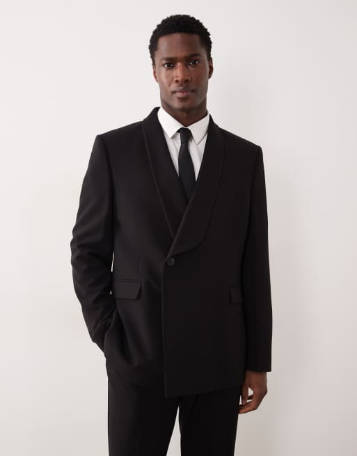 ASOS DESIGN double breasted regular suit jacket in black crepe