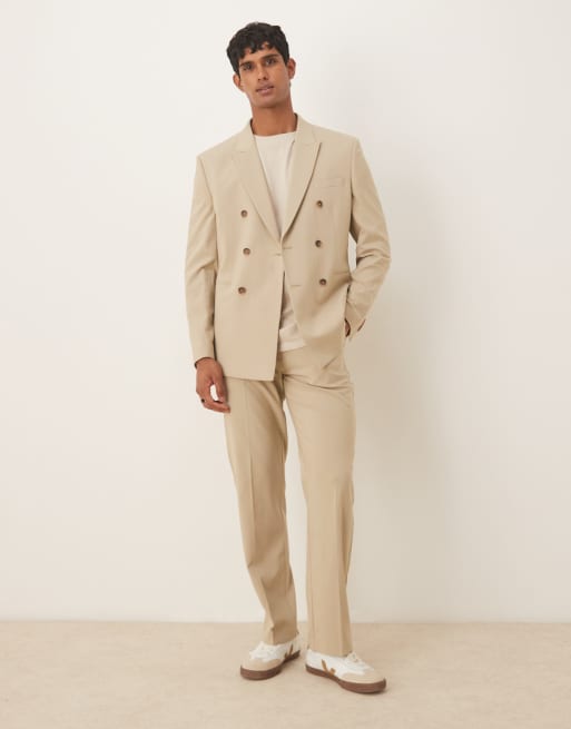 ASOS DESIGN double breasted regular suit set in stone
