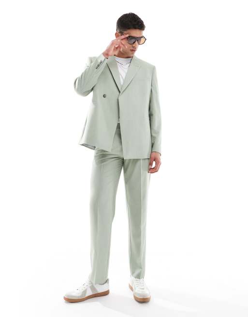 ASOS DESIGN double breasted regular texture suit in sage green
