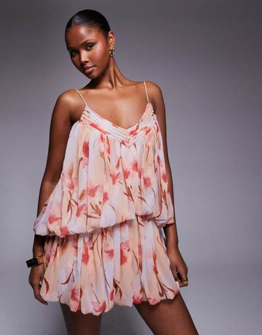 ASOS DESIGN double bubble pintuck cami mini dress in abstract floral print