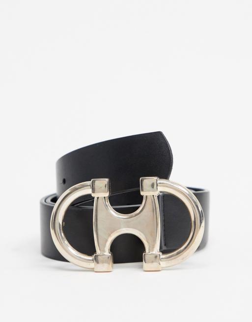 ASOS DESIGN double circle snaffle buckle waist and hip jeans belt in black