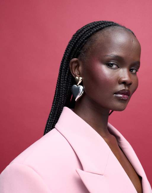 ASOS DESIGN double drop stud earrings with heart design in mixed silver tone and gold tone