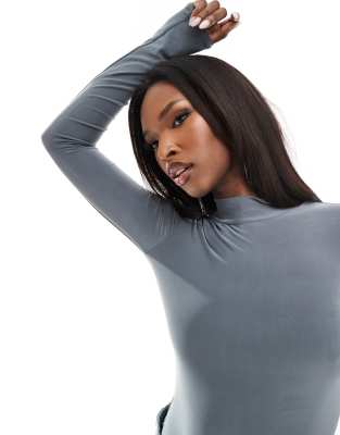 ASOS DESIGN double layer slinky high neck long sleeve bodysuit in lava asmoke