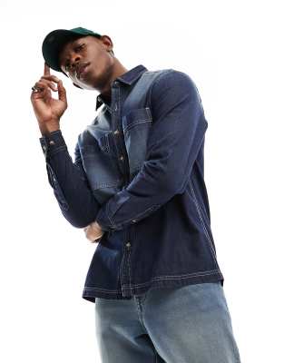 ASOS DESIGN double pocket denim overshirt in dark blue wash