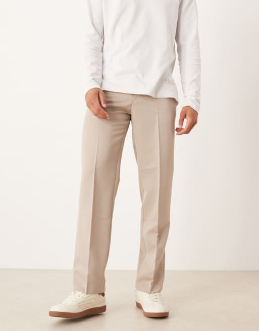 ASOS DESIGN dressy straight leg pants in stone