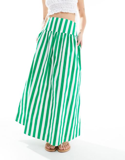 ASOS DESIGN dropped waist cotton poplin maxi skirt in green stripe