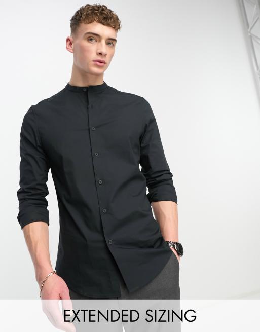 ASOS DESIGN easy iron slim fit poplin shirt with grandpa collar in black