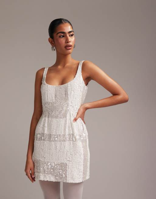 ASOS DESIGN embellished square neck mini shift dress in ivory
