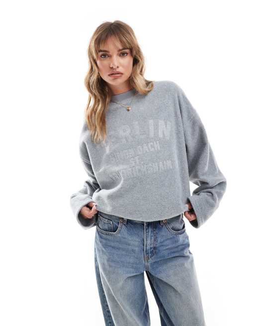 ASOS DESIGN embossed berlin graphic borg sweatshirt in gray heather