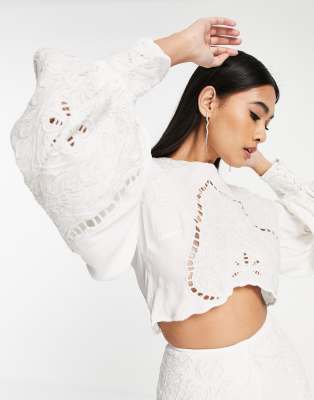 ASOS DESIGN embroidered top with cutwork in ivory