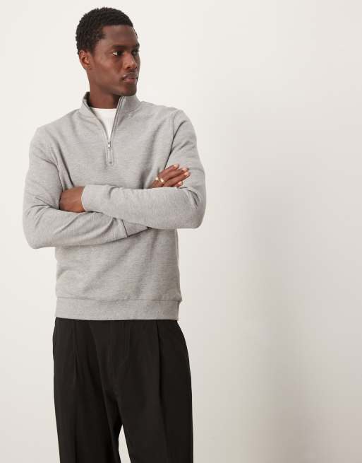 ASOS DESIGN essential sweatshirt with quarter zip in gray heather