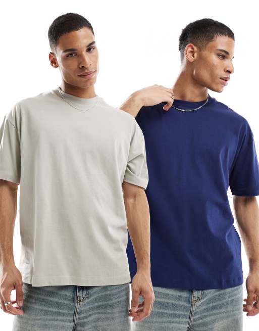 ASOS DESIGN essentials 2 pack oversized T-shirts in navy and gray