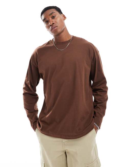 ASOS DESIGN essentials oversized long sleeve T-shirt in brown