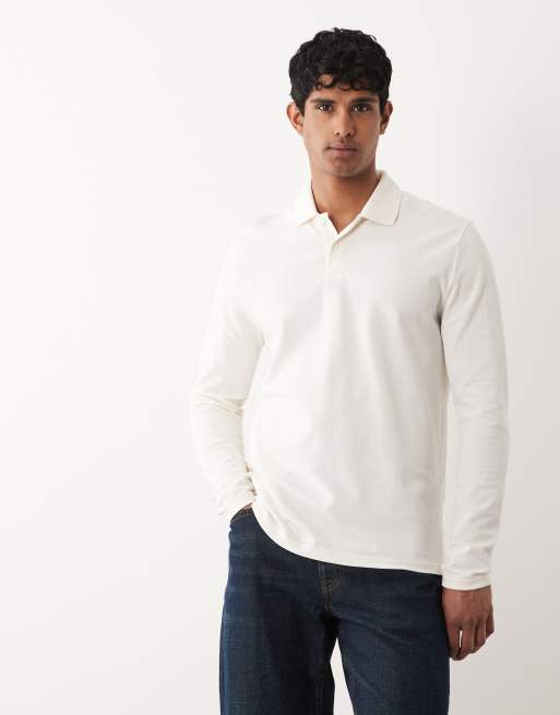 ASOS DESIGN Essentials regular fit long sleeve polo in cream pique.