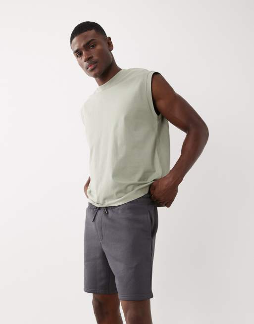 ASOS DESIGN Essentials slim mid length jersey shorts in charcoal