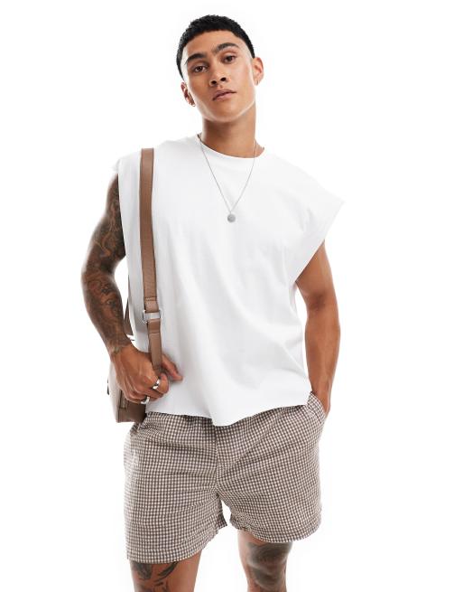 ASOS DESIGN extreme oversized heavyweight sleeveless t-shirt with raw edge in white