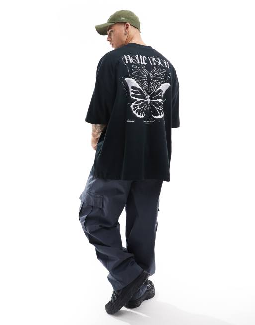 ASOS DESIGN extreme oversized T-shirt in black with butterfly back print