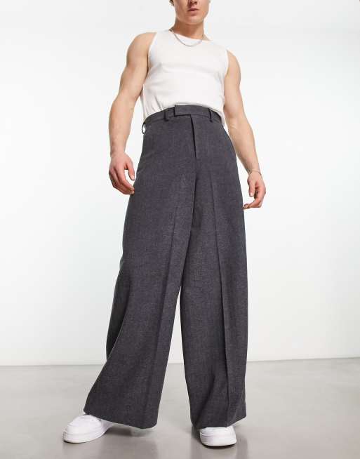 ASOS DESIGN extreme wide leg wool mix smart pants in charcoal