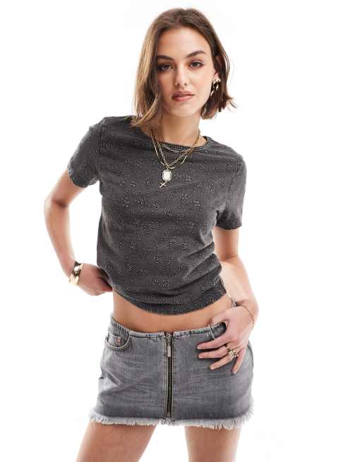 ASOS DESIGN eyelet baby tee in washed charcoal