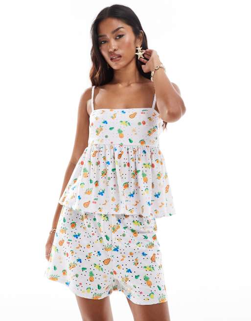 ASOS DESIGN eyelet peplum cami top in fruit print