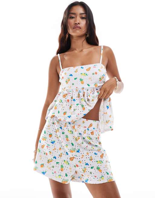 ASOS DESIGN eyelet short and peplum top set in fruit print