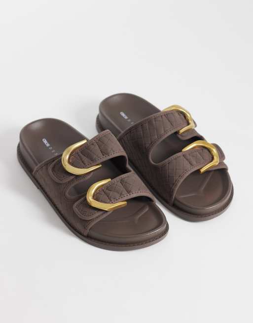 ASOS DESIGN Falcon double buckle footbed sandals in chocolate