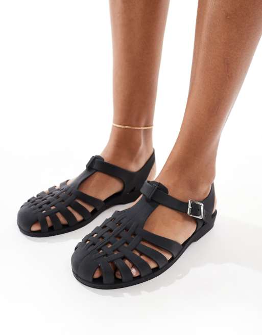 ASOS DESIGN Falcon jelly flat sandals in black