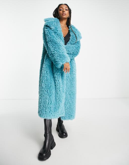 ASOS DESIGN faux fur maxi coat in blue