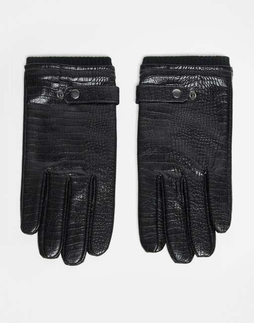 ASOS DESIGN faux leather croc dressy gloves in black