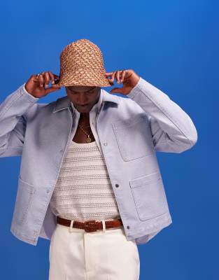 ASOS DESIGN faux leather Harrington jacket in washed blue