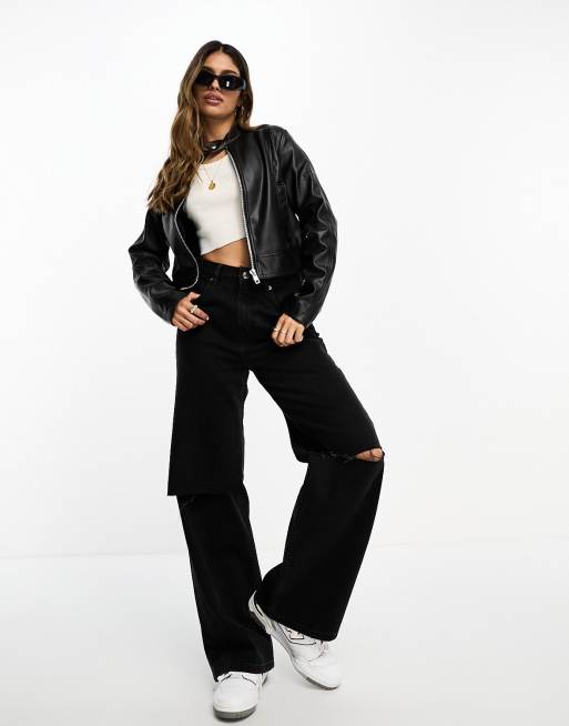 ASOS DESIGN faux leather moto jacket in black