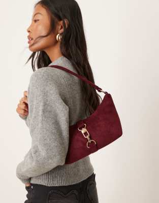 ASOS DESIGN Faux suede dog clip shoulder bag in burgundy