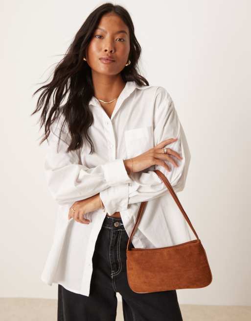 ASOS DESIGN faux suede shoulder bag with skinny straps in brown