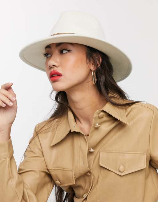 ASOS DESIGN felt fedora hat with tan band and size adjuster in cream