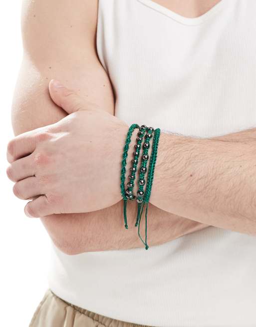 ASOS DESIGN festival fabric and metallic beads 4 pack bracelets in green