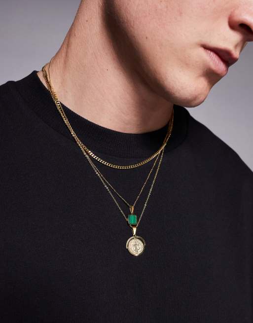 ASOS DESIGN festival waterproof stainless steel 3 pack pendant necklaces in gold tone