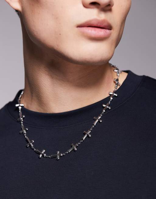 ASOS DESIGN festival waterproof stainless steel chain cross pendant necklace in silver tone